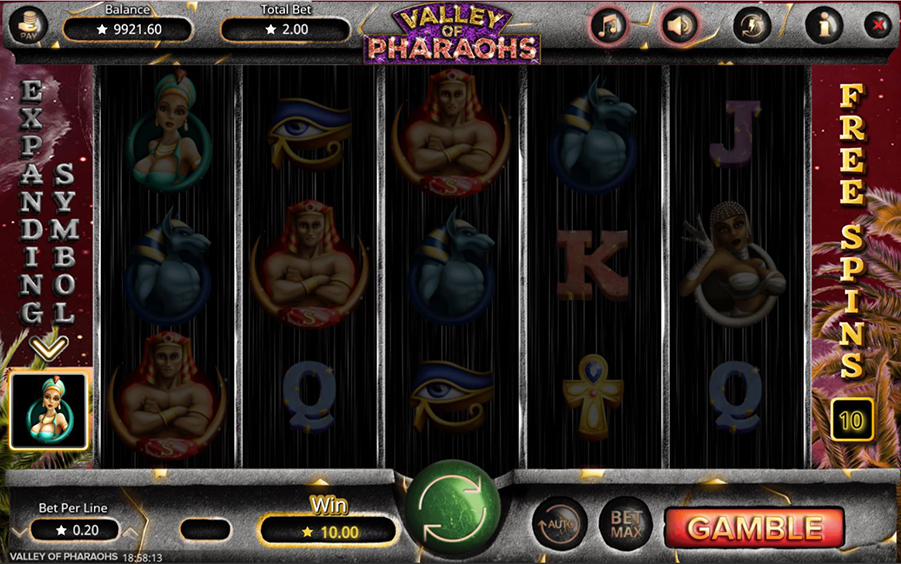 Er zijn genoeg mooie prijzen te winnen bij Valley of Pharaohs – iets wat zeker het geval is als je speelt op alle tien de winstlijnen en dan een paar Wilds weet te pakken. Ook het Scatter symbool, dat je 10 of meer gratis spins op kan leveren, staat garant voor enkele mooie uitbetalingen als je ze eenmaal weet vrij te spelen.